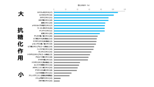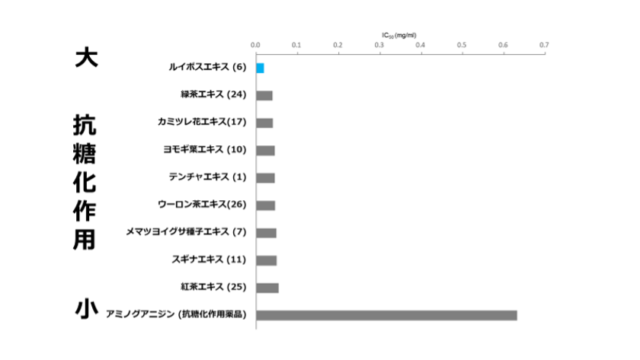 その結果として、ルイボスエキスに高い抗糖化作用がある事を見出しました。