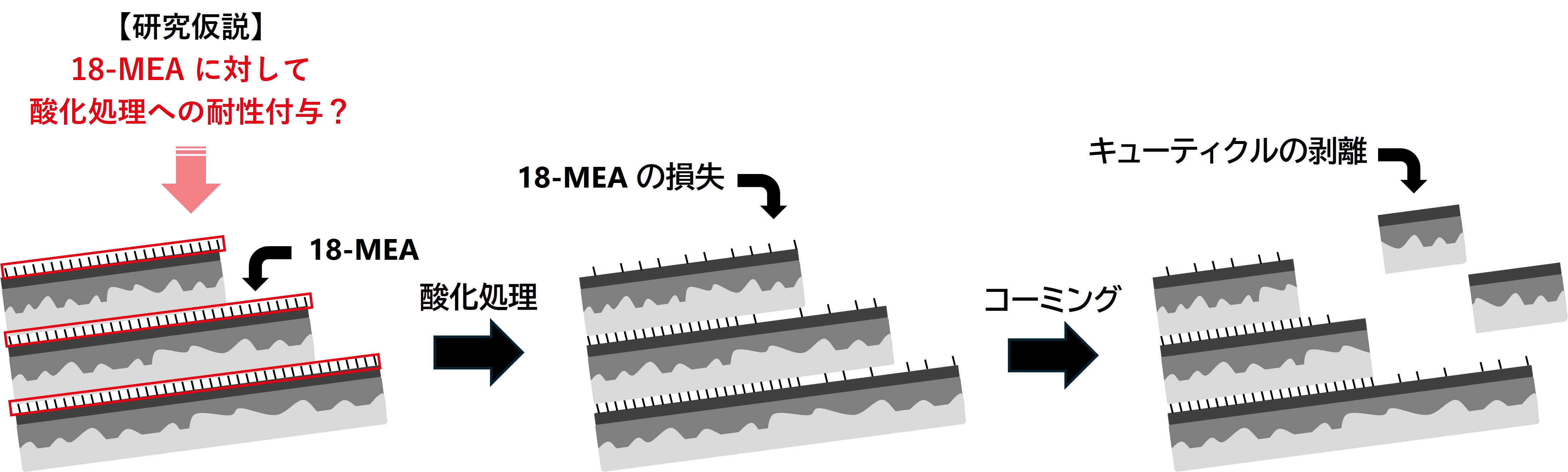 - カチオン性物質の前処理により、18-メチルエイコサン酸(18-MEA)の損失を抑制する効果、およびキューティクルの剥離を抑制する効果が得られることを確認した。