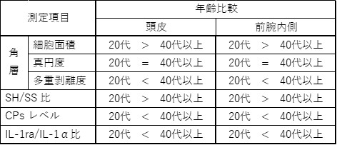 【研究成果 1】 加齢に伴う頭皮角層状態の評価
