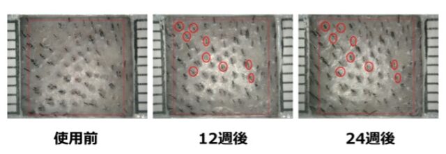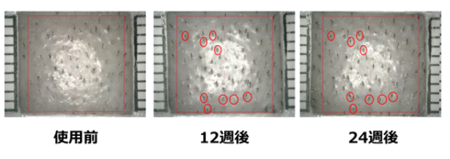 その結果、これらの成分を配合した育毛剤は毛径及び毛髪本数・密度の項目において有意な改善効果が確認されました。また、洗髪時の抜け毛本数では、有意ではないものの減少傾向が確認されました。加えて、頭頂部の写真撮影の結果からは、女性がもっとも気にするとされている分け目が目立ちにくくなるといった効果も確認できました。