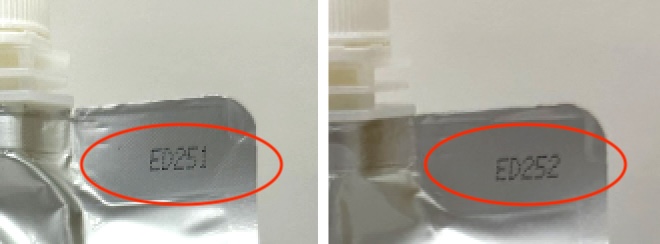 | 製造番号 (容器 正面右上部に印字) | ED251 ED252 |