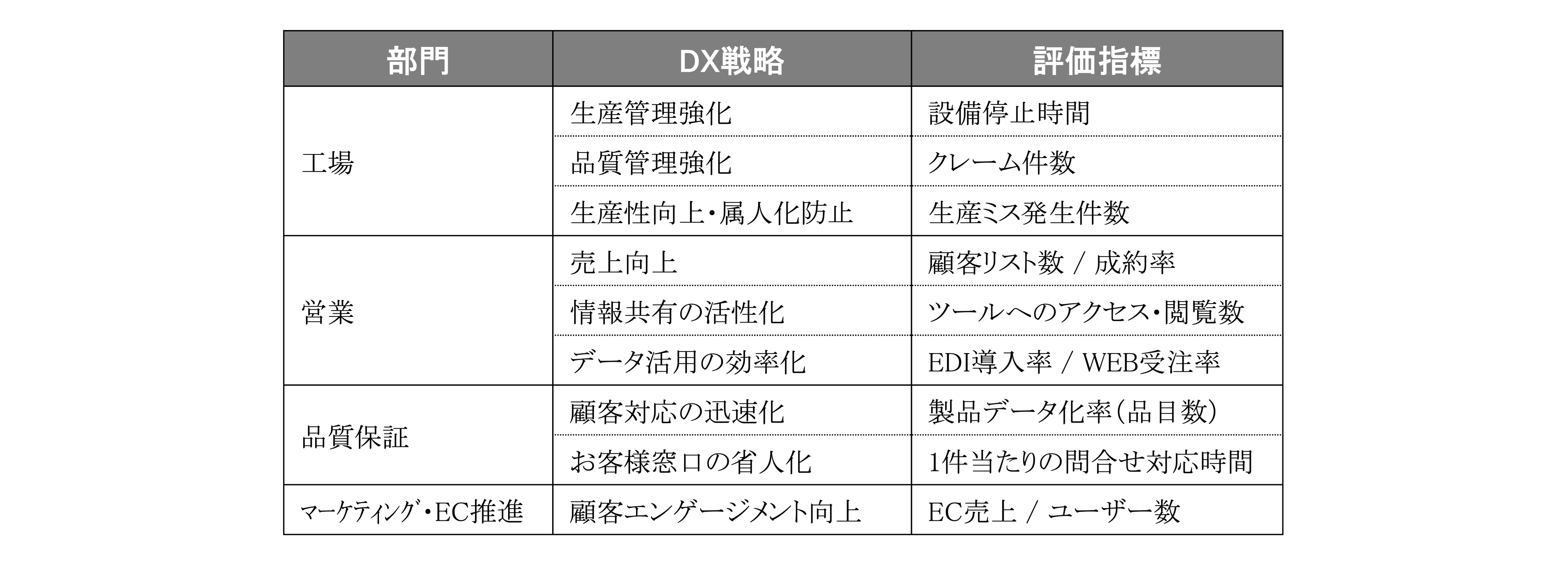 各DX戦略の効果や進捗を把握するため、以下の指標に基づき状況確認をしながら取り組みを進めてまいります。