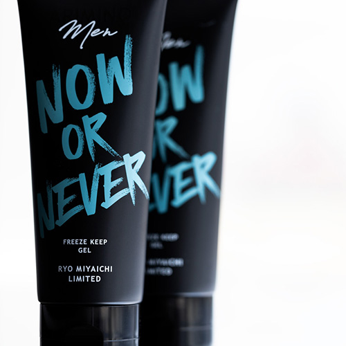 「NOW OR NEVER」は、「今しかない」という意味。今にすべてを懸け、全力で挑んでいる宮市選手の意志とモットーを、容器デザインで表現。